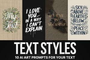 These text style AI art prompts are optimized for Ideogram and allow you to personalize artwork with your own messages while maintaining consistent artistic quality. Perfect for creating custom quotes, social media graphics, wall art, and personalized designs.