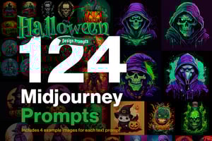 A bundle of 124 customizable Midjourney prompts for the Halloween and Gothic Art.