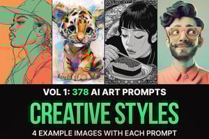 Transform your AI art with 378 professionally crafted creative style prompts for stunning visual results.
