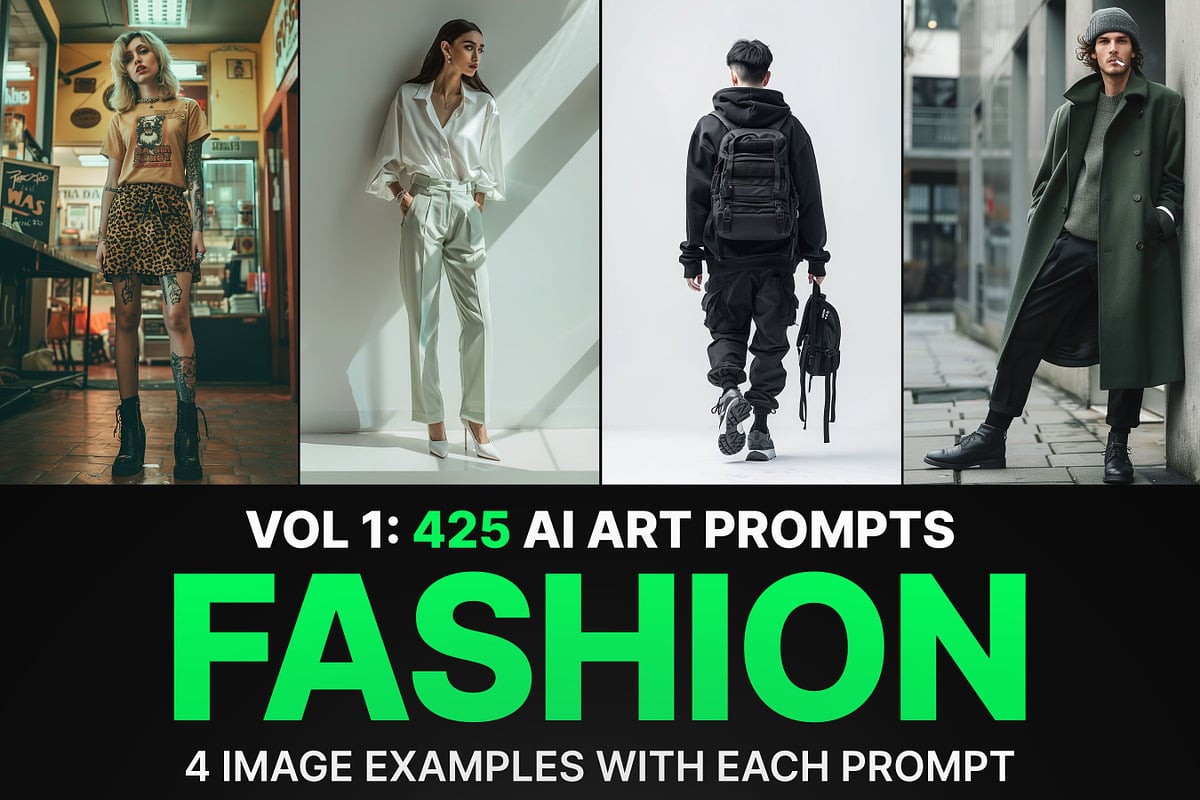 Generate stunning fashion AI art with 425 expertly crafted prompts designed for fashion enthusiasts and creators.