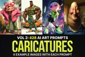 Transform your AI art with 428 unique caricature prompts designed to create stunning exaggerated portraits and character illustrations.