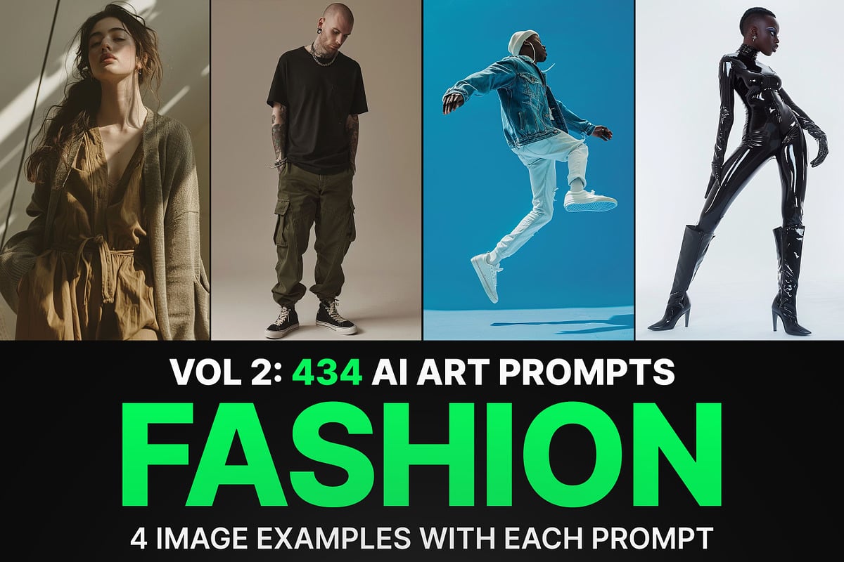 Transform your creative vision with 434 unique fashion AI art prompts designed to generate stunning style-focused artwork.