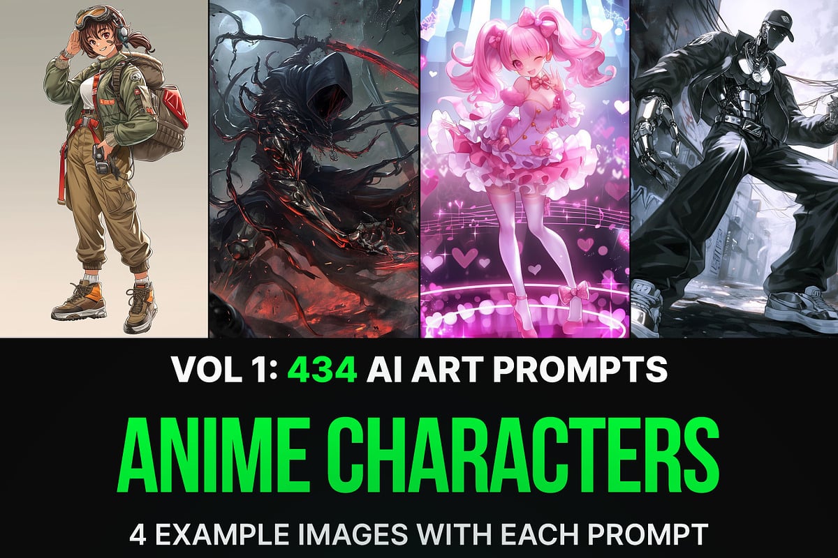 Transform your creative vision with 434 expertly crafted Midjourney prompts for stunning anime characters.