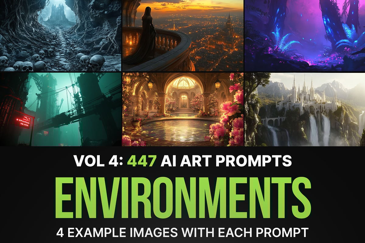 Transform your AI art with 447 expertly crafted environment prompts for stunning landscape generation.