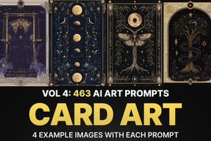 Transform your creative workflow with 463 unique AI art prompts specifically crafted for stunning card designs.