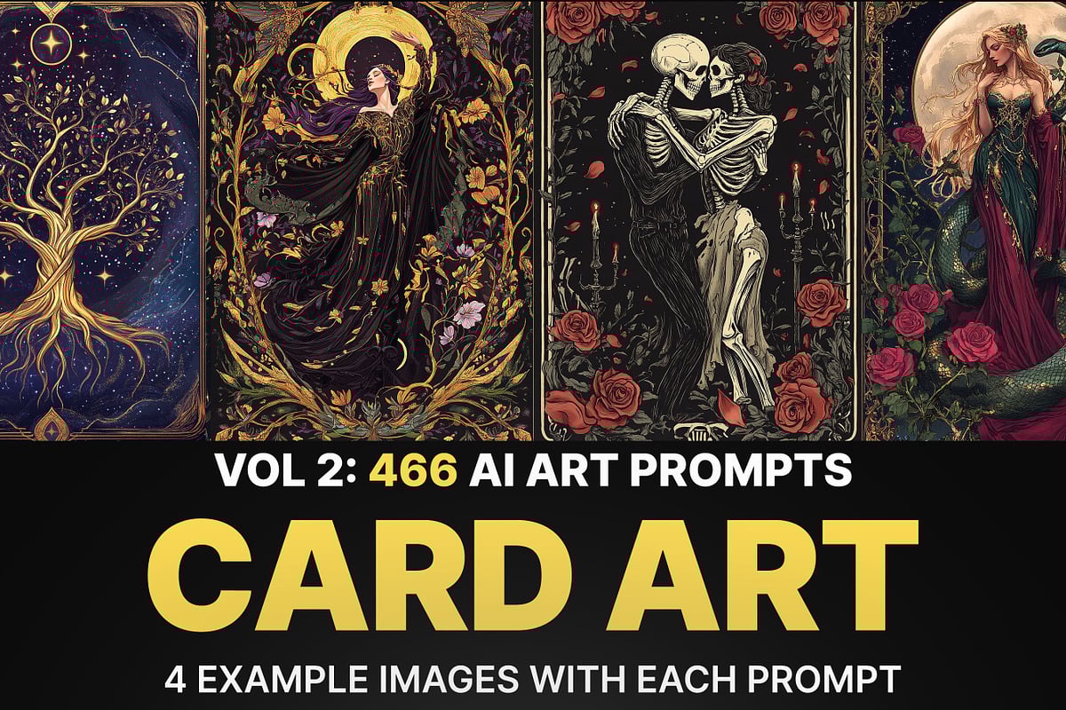 Transform your creative vision with 466 unique AI prompts designed specifically for stunning card artwork.