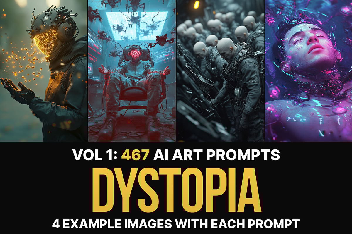 Transform your AI art with 467 professionally crafted dystopian prompts - each with 4 stunning example images.