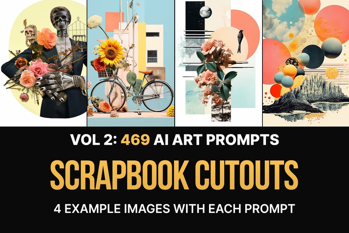 Transform your creative projects with 469 customizable Midjourney prompts designed for stunning scrapbook cutouts.