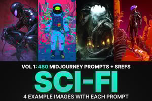 Transform your creative vision with 480 professionally crafted sci-fi prompts featuring Sref codes for stunning AI art generation.