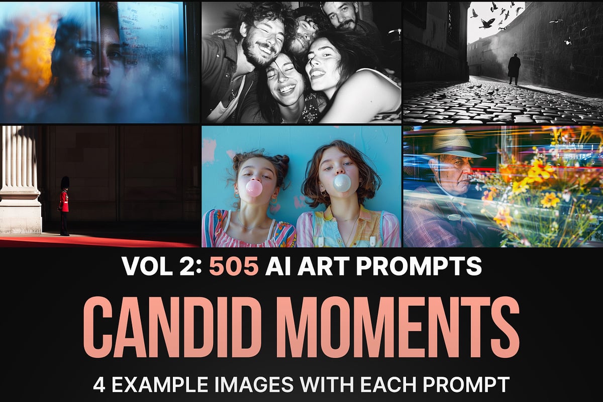 Transform your AI art with 505 authentic candid moment prompts that capture life's genuine emotions and spontaneous interactions.