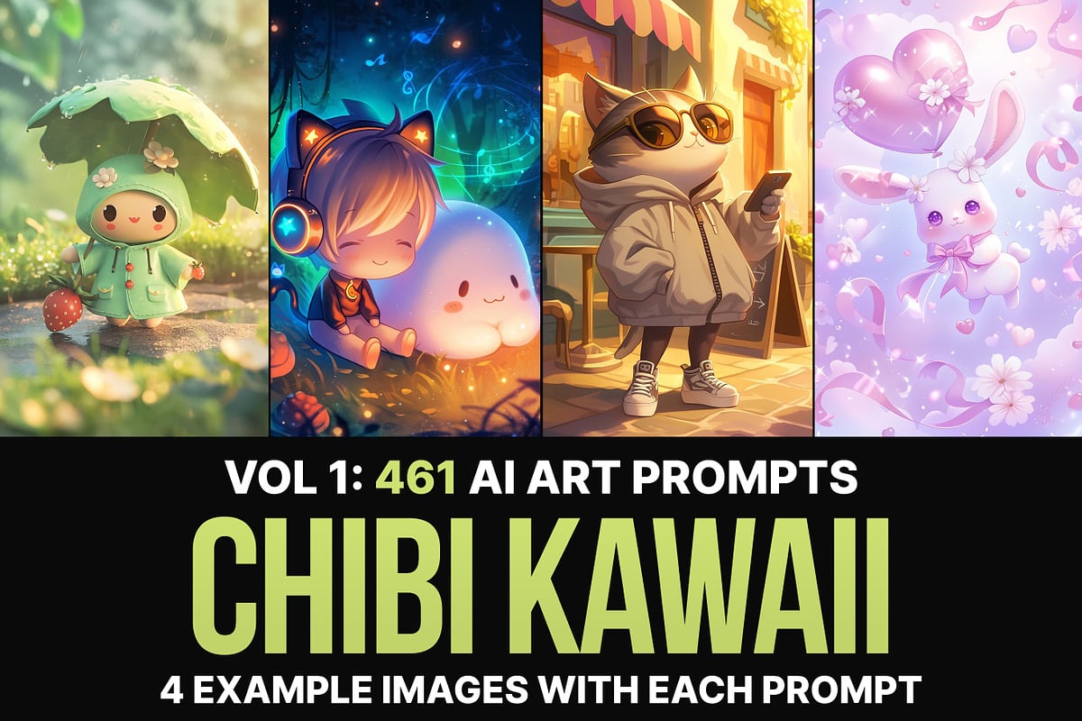 Create adorable chibi kawaii artwork with 634 unique AI art prompts designed for stunning cute character generation.