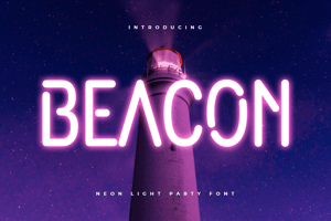 Beacon features a modern sans serif design crafted specifically for headlines, titles, and standout typography that demands attention. The contemporary letterforms capture the essence of glowing neon signage, making your text pop with vibrant, party-ready style.