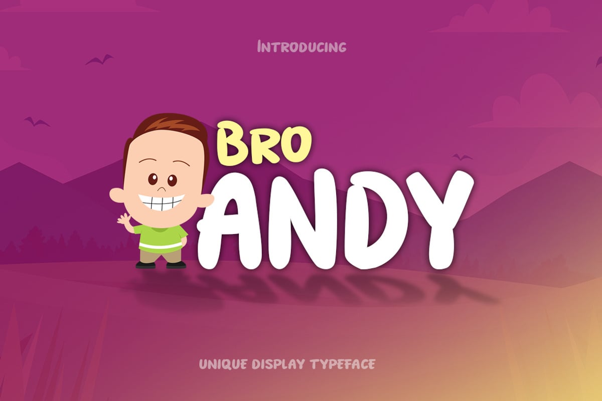 Bring joy and playfulness to your designs with Bro Andy, a delightfully cheerful children's font.