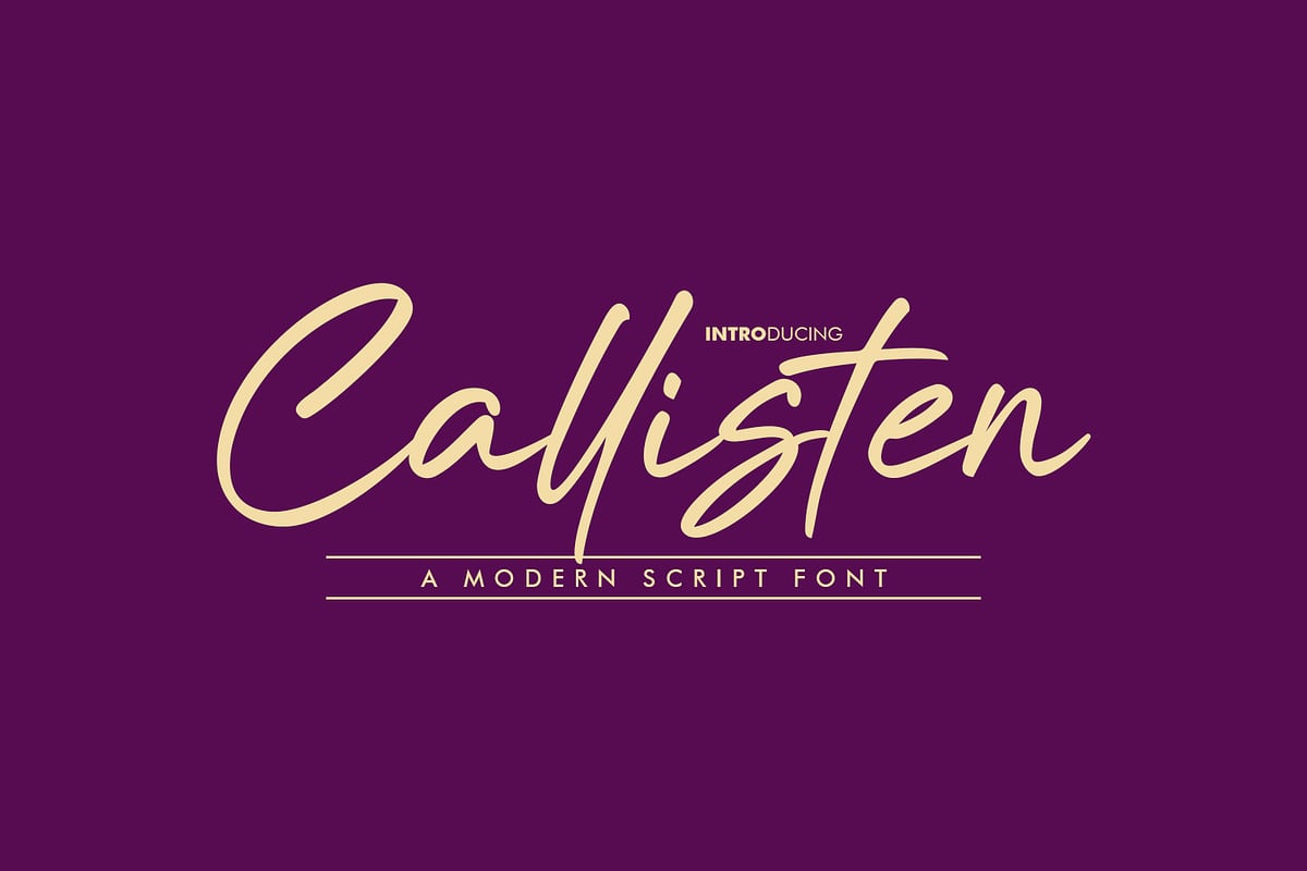 Elevate your designs with Callisten, a beautifully crafted modern script font that adds elegance to any project.