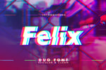 Create striking digital designs with Felix, a bold sans serif duo featuring glitch effects and clean alternatives.