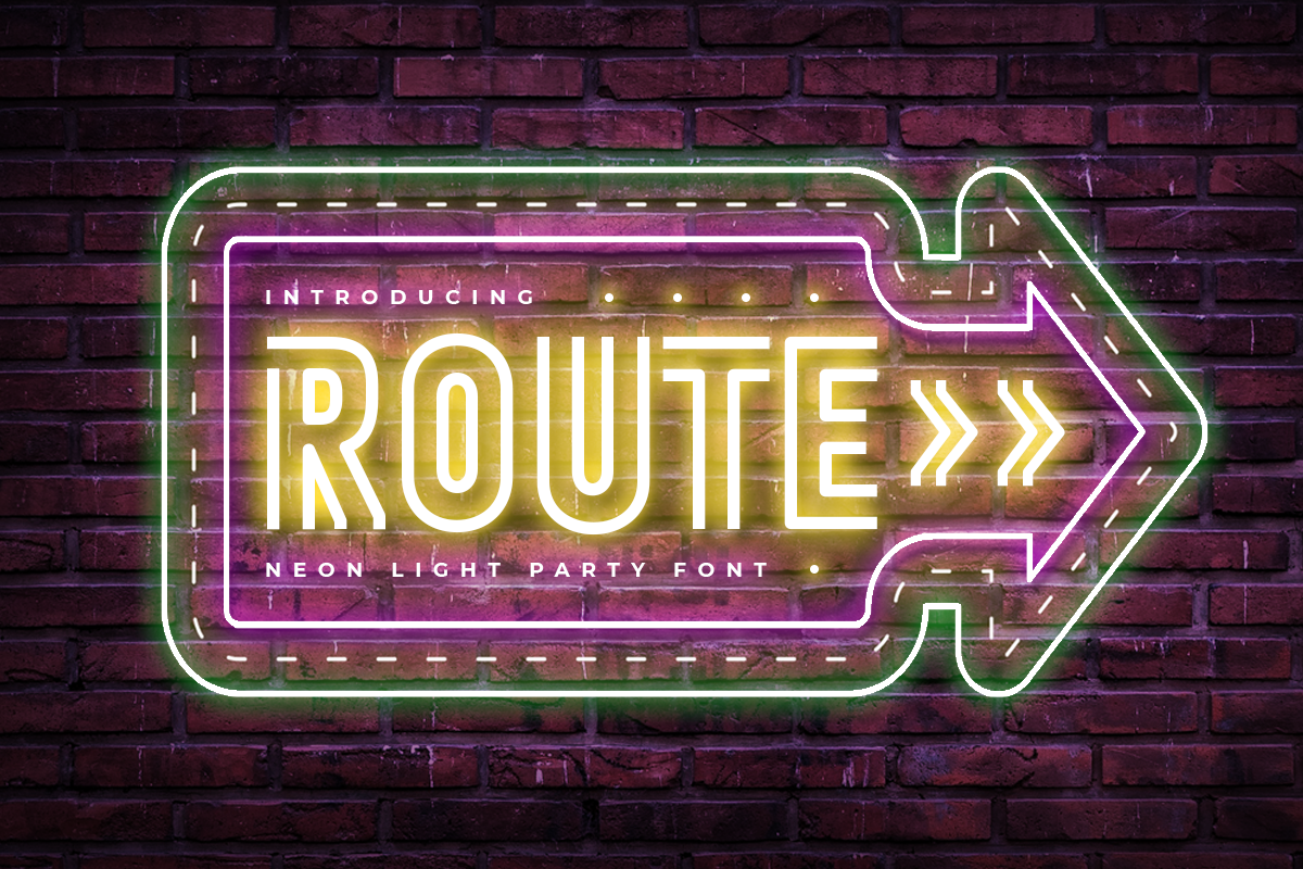 Create electrifying designs with ROUTE - the neon light party font that makes every headline pop with retro style.