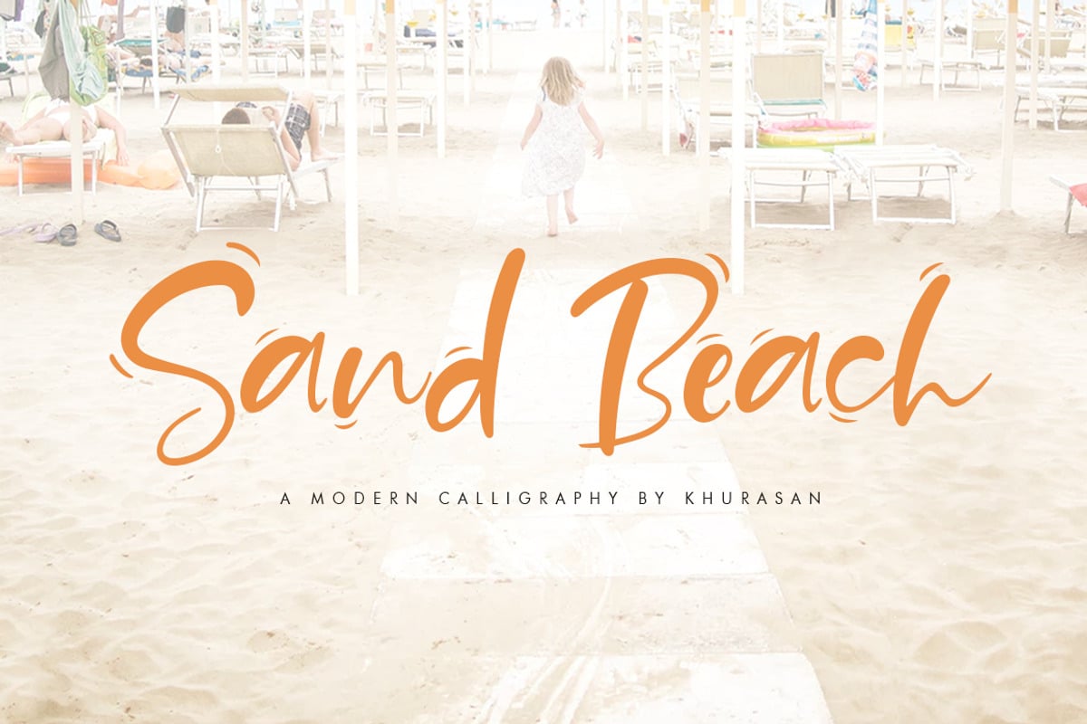 Add cheerful elegance to your designs with Sand Beach Script, a modern calligraphy font perfect for fun creative projects.