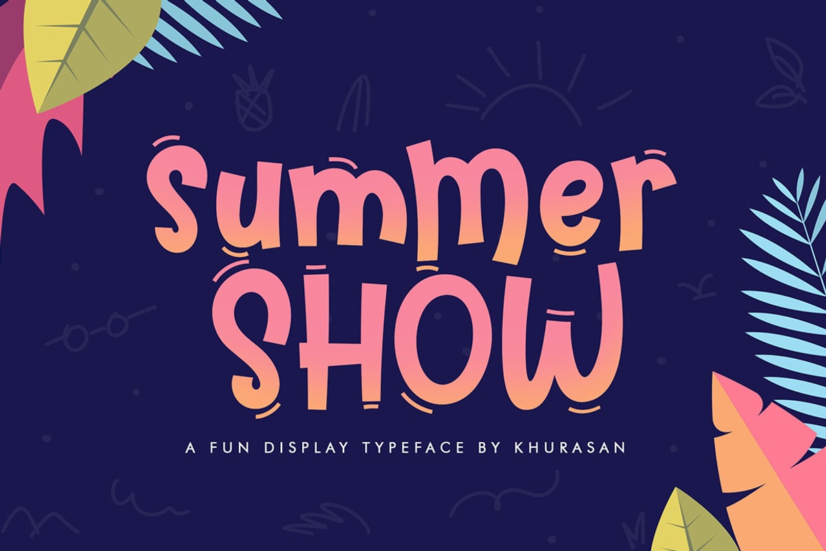 Bring vibrant summer energy to your designs with Summer Show, a bold display typeface crafted for cheerful, fun projects.