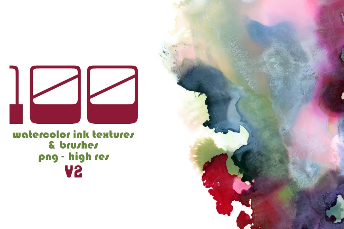 This download includes 100 high-resolution watercolor ink texture brushes for Photoshop CS3 and above.