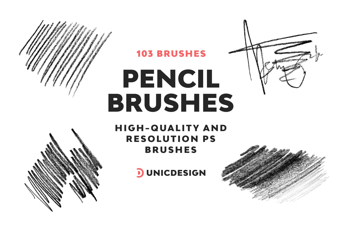 Create amazing pencil effects with this set of 103 pencil brushes included! The brushes are high-quality and resolution.