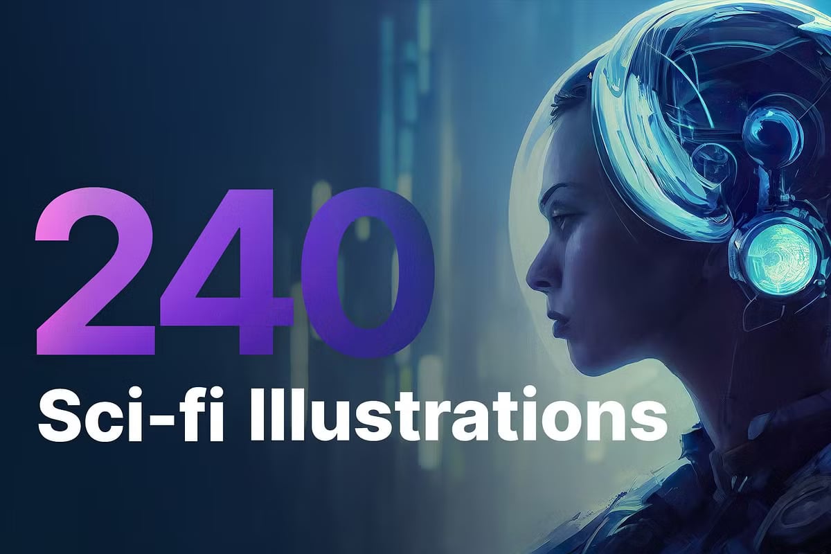 A collection of 240 high resolution AI art scifi illustrations The download includes:
