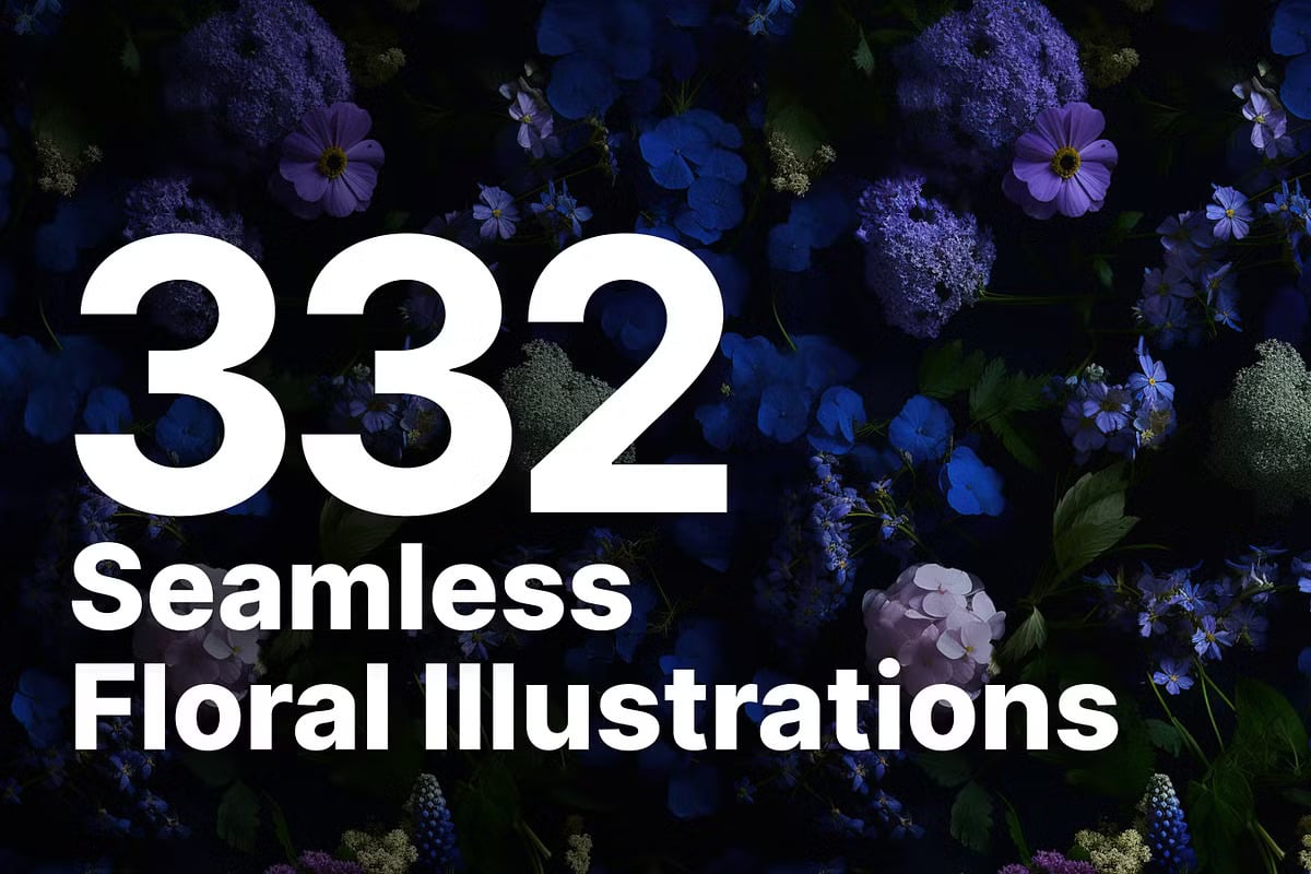 A collection of 332 high resolution seamless floral illustrations. Each seamless image is 2448 x 4368 pixels.