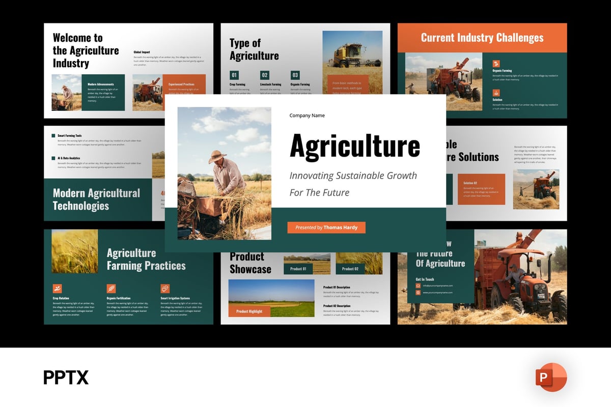 Perfect for agribusiness professionals, farmers, startups, and sustainability projects, this comprehensive presentation deck features organic color palettes, contemporary design elements, and professional layouts that make your content shine. Whether you're creating company profiles, project proposals, or environmental reports, this template delivers the professional polish your agriculture business deserves.