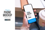 Showcase your mobile designs with this premium coffee shop phone mockup featuring books and cozy indoor vibes.