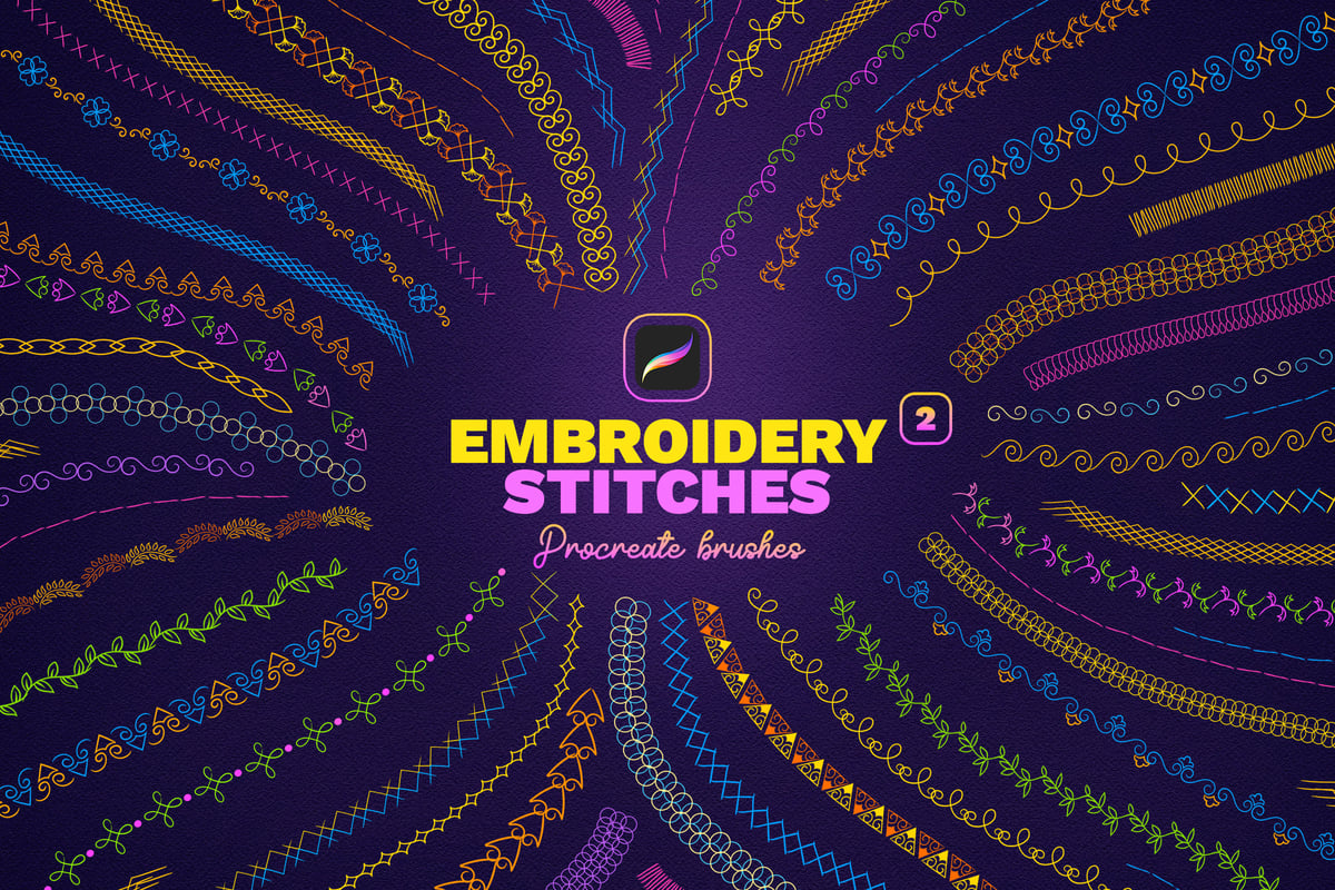 Realistic embroidery stitches for iPad drawing. 40 different brushes for Procreate. Great for drawing authentic ornaments, embroidery ornaments, embroidery patches and more.