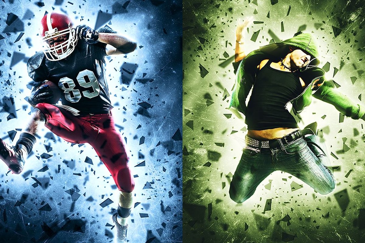 The action is also made so that everytime you run the action – you’ll get unique result, even if you use the same brushed area. The action will always create a unique textures and shattered parts variation. You can create unlimited number of results!