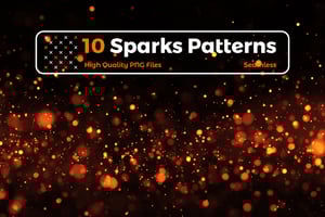 This collection features 10 high-quality seamless spark patterns, each showcasing brilliant golden particles and glowing embers against deep backgrounds. Perfect for adding magical lighting effects, celebratory atmospheres, or fantastical elements to your creative projects.