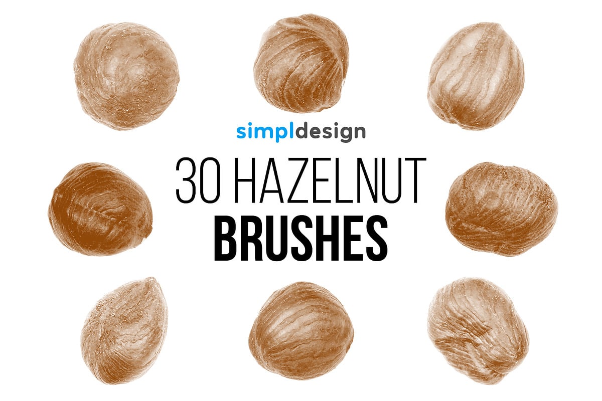 Create stunning hazelnut-themed designs with 30 high-quality realistic Photoshop brushes!