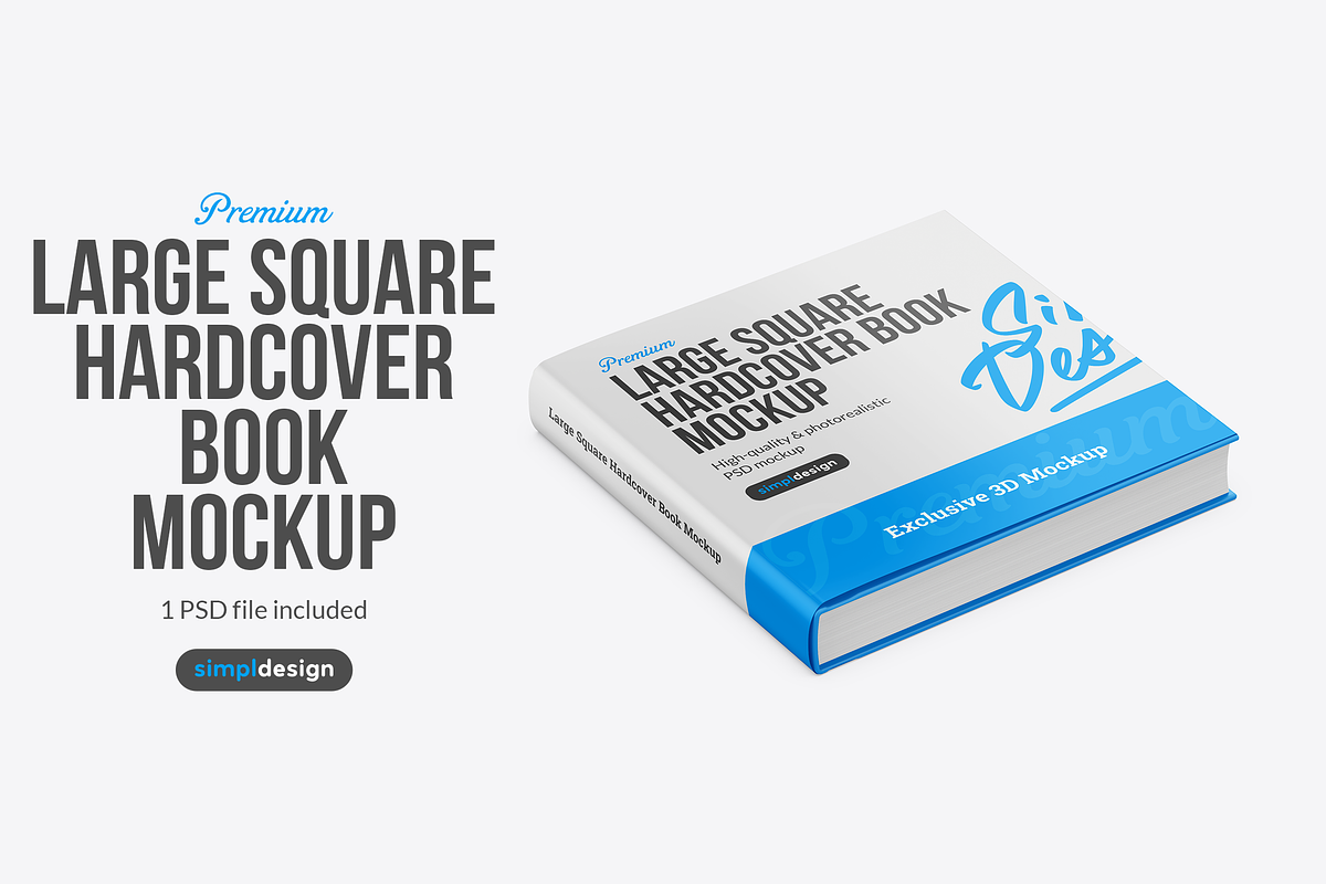 Present your book design and book template in the right way using this premium large square hardcover book mockup. Simply place your design with a single click using the Photoshop smart object - it's really that simple!