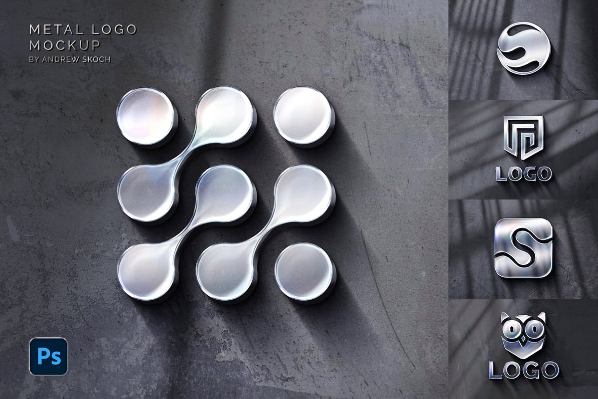 The main feature of this mockup is its ability to create a shining polished chrome metal effect, giving your logo a realistic and professional look. Additionally, it offers a selection of five grey wall textures that can be used as backgrounds to enhance the presentation of your design.