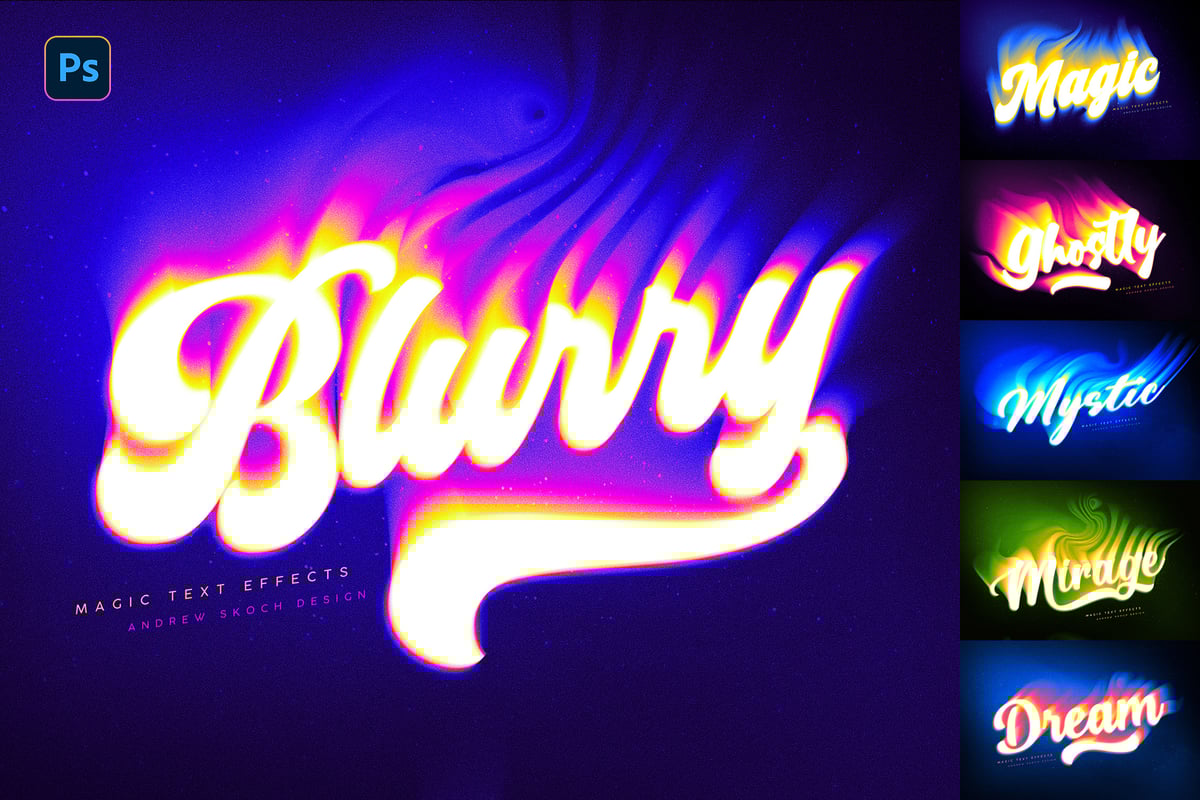 Bring dreamy energy and glowing magic to your typography with this Mystic Blur Text Effects pack! Designed for bold, futuristic, or psychedelic aesthetics, this high-resolution Photoshop template includes 6 mesmerizing text effects, each with 6 vivid color variations.