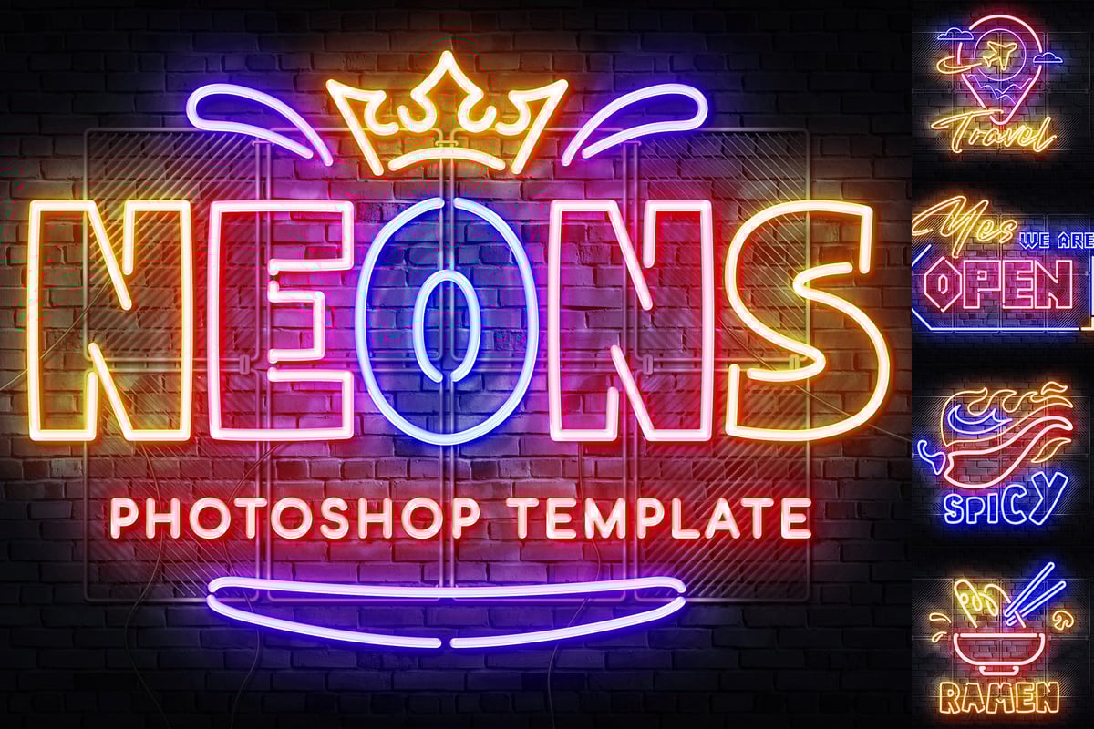Color neon effects from your text, logo, shape, icons. Open smart object, place your logo and save. Neon effect will be applied automatically. Neon outline generates automatically. There are 5 colors. You can change neon tube thickness. Detailed video instruction is included.
