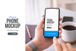 Showcase your mobile designs with stunning realism using this professional hand-held phone mockup!