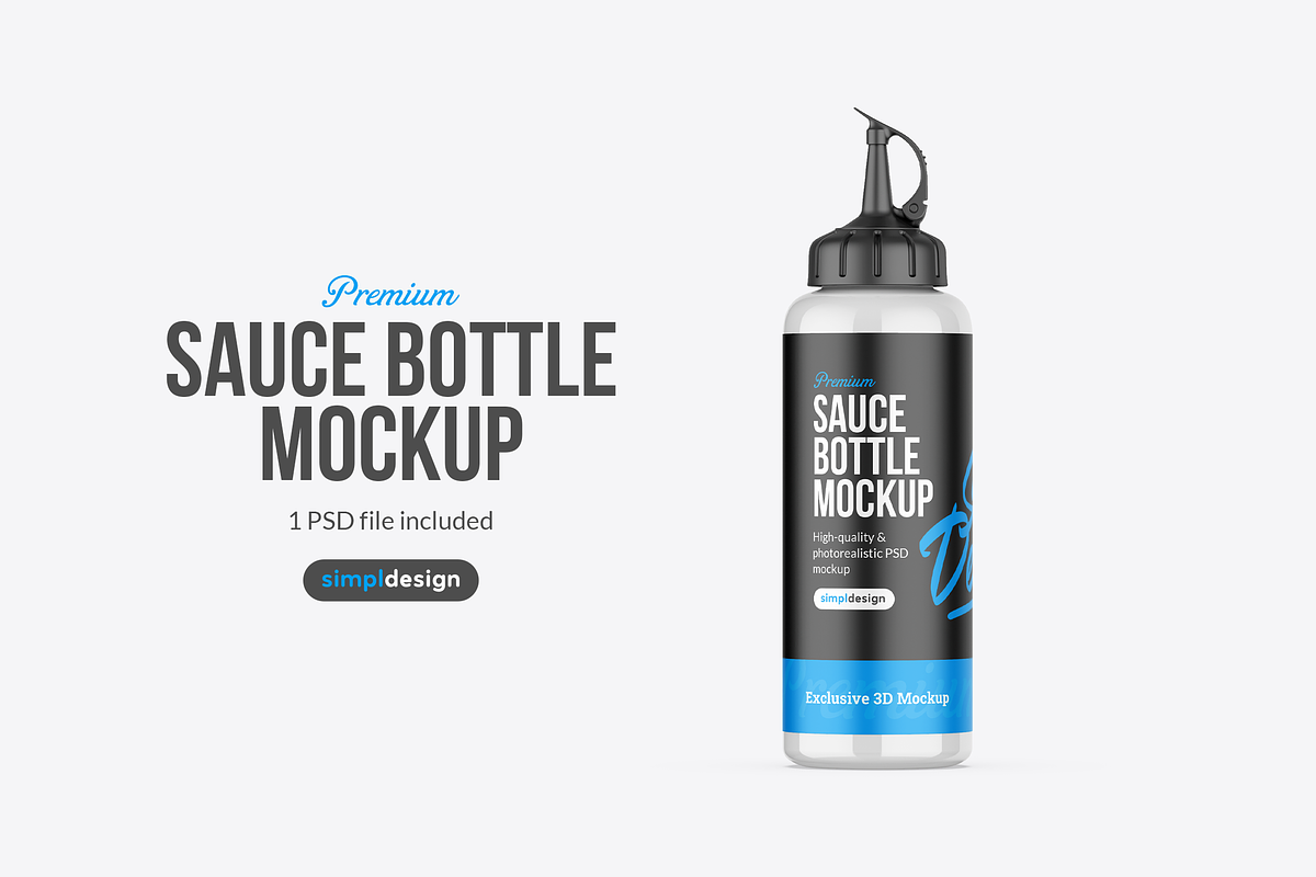 Showcase your sauce bottle designs with this premium photorealistic 3D mockup template.