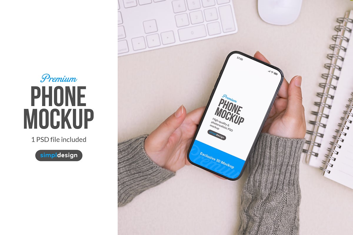 Present your screen designs and app interfaces professionally with this stunning phone mockup. The realistic hand positioning and workspace setting creates the perfect context for displaying your mobile work.