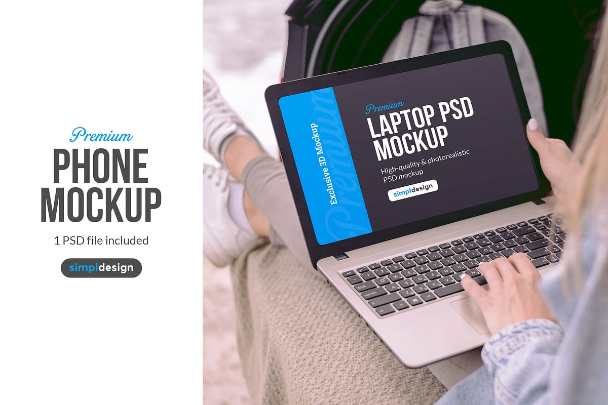 Woman Roadtrip Laptop Mockup