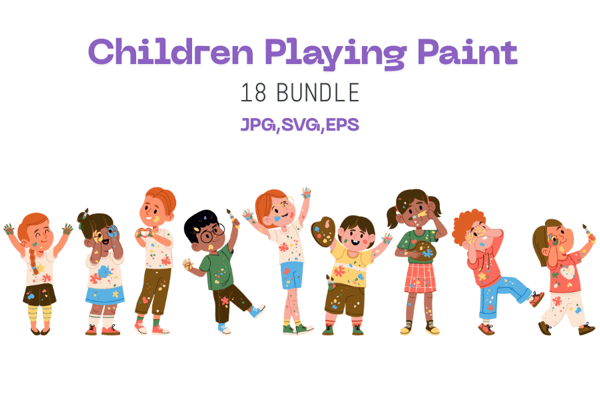 Children Playing with Paint SVG Illustration Bundle, Elements | Svg | Eps | Jpg