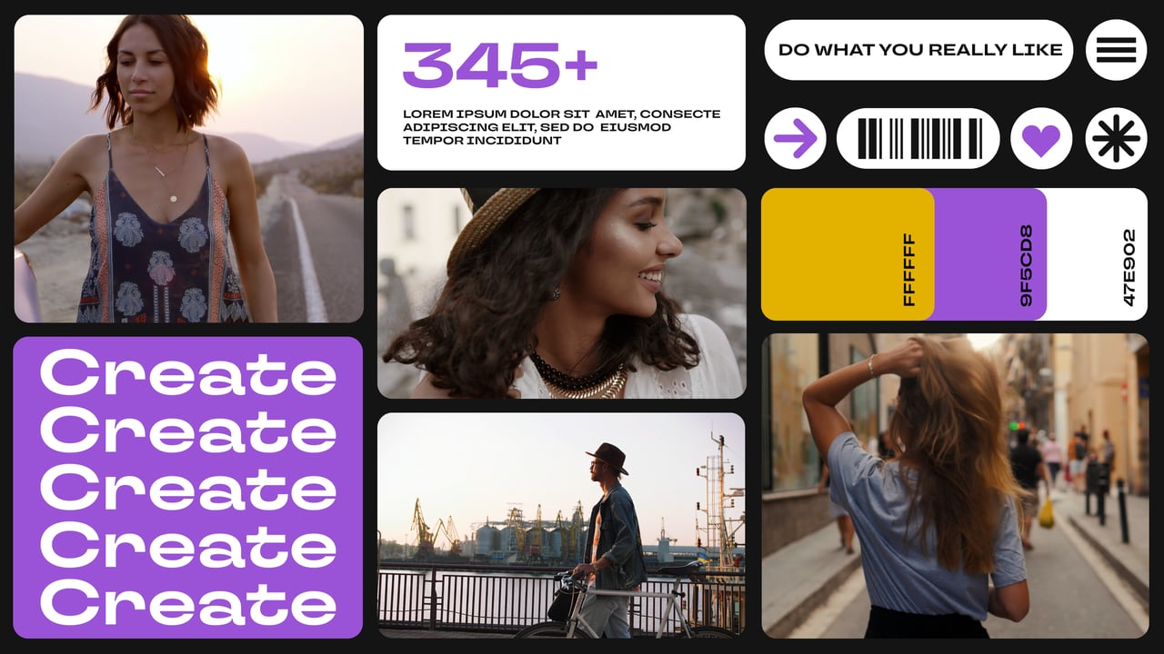 Create stunning trendy multi-frame presentations with this modern bento-style media opener template.