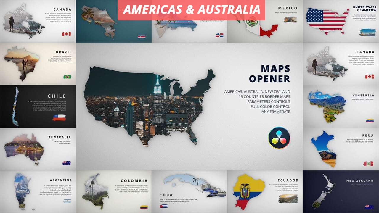 Maps Opener - Americas | Australia | New Zealand (for DaVinci Resolve)