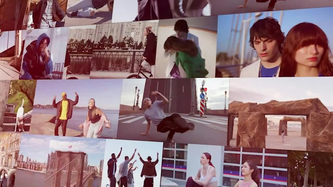 This dynamic multi-frame template creates an eye-catching trendy intro perfect for demo reels and promotional content. The mosaic design seamlessly transitions through your images before revealing your brand logo with professional impact.
