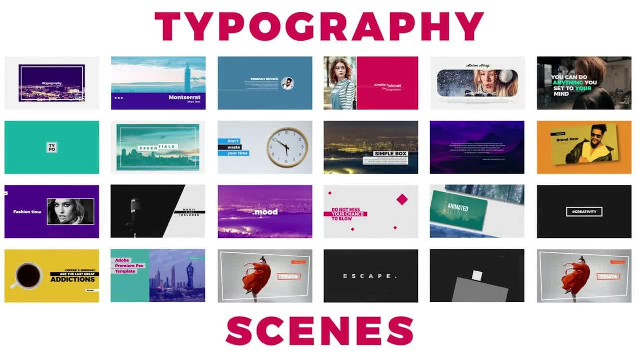 Typography delivers beautifully animated text scenes that are incredibly easy to edit without ever opening After Effects. Each scene features unique, smooth animations with a modern aesthetic perfect for professional projects.